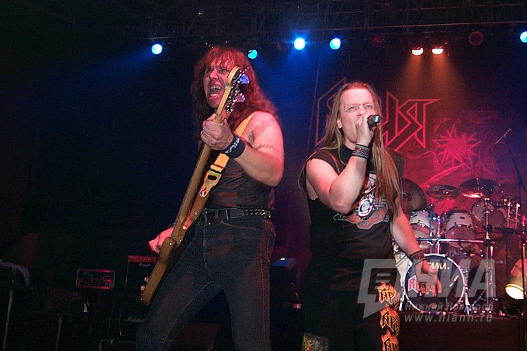 Концерт начали "Рэйдж", причем без всяких заминок и томительного ожидания – в 19.00, минута в минуту, на сцену Дворца Спорта вышли немецкие музыканты. Трое музыкантов представляют интернациональный коллектив. Лидер и основатель группы Питер Вагнер (Пиви)- бас-гитарист и вокалист, второй участник (лид-гитара) – пришедший в группу в 1999 году наш соотечественник, игравший в свое время в легендарных белорусских "Песнярах" Виктор Смольский. К тому времени он уже был известен поклонникам как участник немецкой группы, играющей прогрессив-металл. Пиви с восторгом отзывается о мастерстве Виктора, подкрепленном 18 годами классического музыкального образования. Третий участник команды, один из самых известных сессионных музыкантов мира Майк Террано (ударные) из Лос-Анджелеса. Этот состав образовался в 1999 году и Пиви считает, что трио – это оптимальный состав для группы. Действительно, по мнению слушателей, бывших на вчерашнем окнцерте, композиции "Рэйдж" были озвучены лучше и звучали чище чем у "Арии", в состав которой входит пять музыкантов.