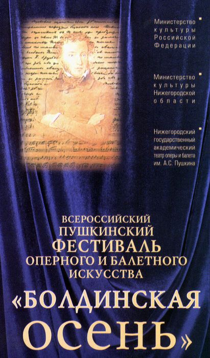 XVIII Всероссийский Пушкинский фестиваль оперного и балетного искусства "Болдинская осень" пройдет в Нижегородском театре оперы и балета имени Пушкина при поддержке регионального министерства культуры 18-27 ноября 2004 года. Об этом корреспонденту Нижегородского телеграфного агентства сообщила заместитель директора театра по связям с общественностью Светлана Ларина.