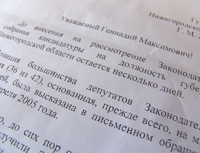 Письмо к Геннадию Ходыреву с просьбой отказаться от претензий на пост главы региона вновь подписали 36 из 42 депутатов Законодательного собрания Нижегородской области. Об этом журналистам сообщил 28 июня депутат Законодательного собрания Нижегородской области, член инициативной группы по сбору подписей Михаил Веселкин. Он напомнил, что два месяца назад под подобным письмом также подписались 36 депутатов, однако тогда никакого ответа от губернатора не последовало.
