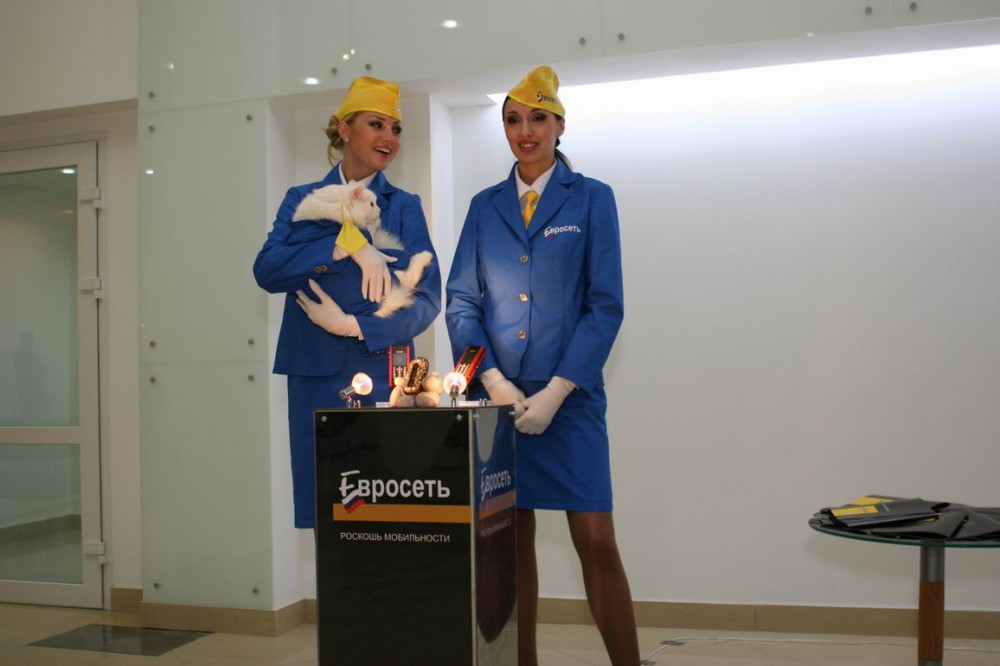автосалона было стилизовано под полет на авиалайнере. У входа гостей встречали очаровательные стюардессы. В роли пилота выступал ведущий вечера. Стюардессами первого класса были девушки, представляющие "Евросеть". В их компании гости праздника знакомились с той роскошью, которую могут предложить современные производители сотовых телефонов.