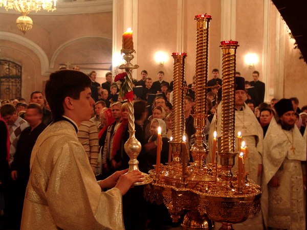 Пасхальное богослужение в соборе Александра Невского в Нижнем Новгороде