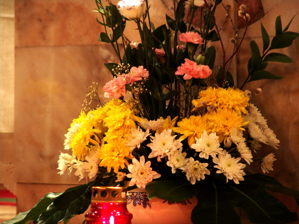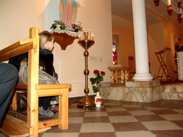 Нижегородцы приносят в костел цветы и возжигают свечи в память о погибших