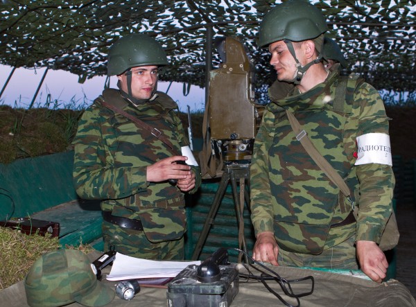 Пункт управления руководителя учений. Командир учений, полковник Вячеслав Буров, проверяет готовность подразделений к учениям