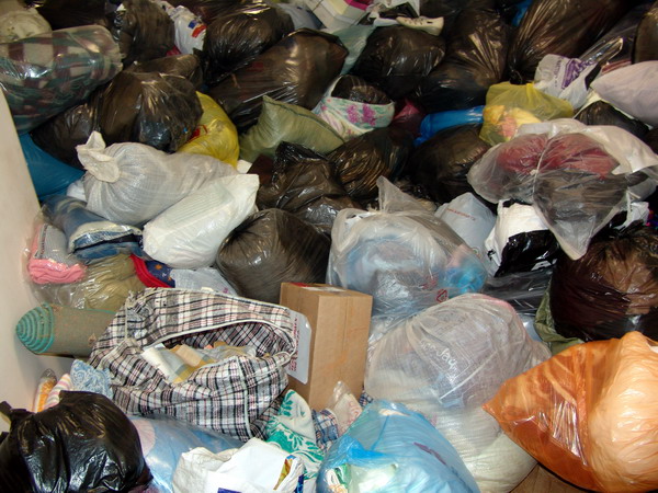 Специалисты министерства социальной политики Нижегородской области сортируют гуманитарную помощь