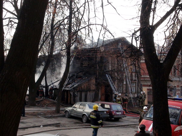 Деревянный двухэтажный дом сгорел в историческом центре Нижнего Новгорода