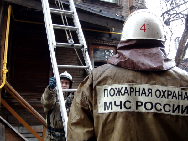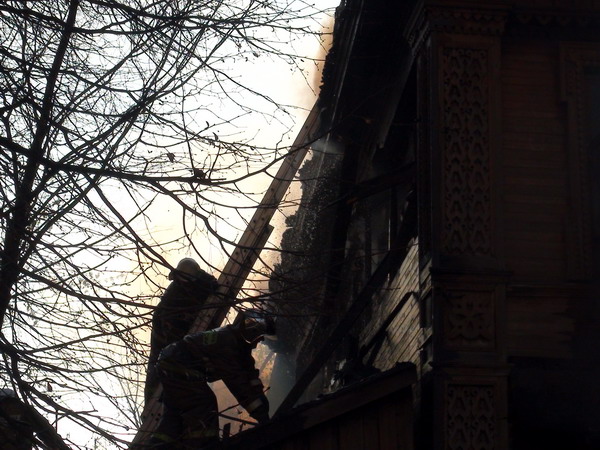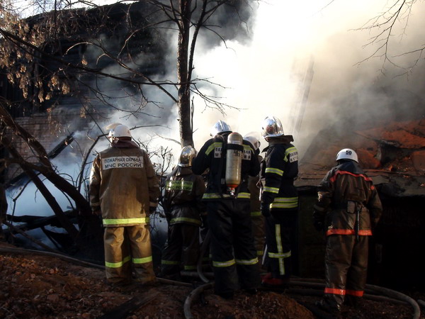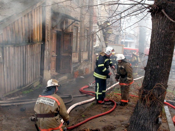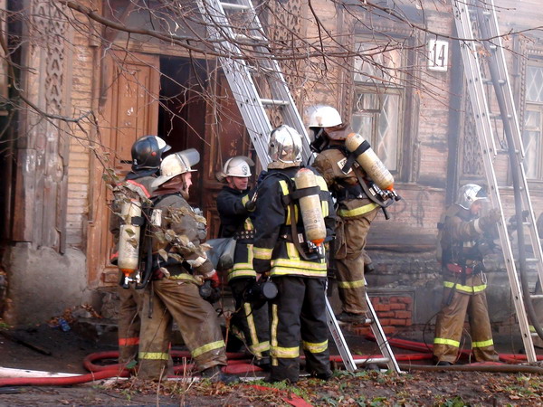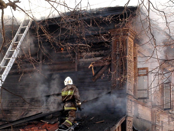 Ликвидация пожара в деревянном двухэтажном доме в Нижнем Новгороде