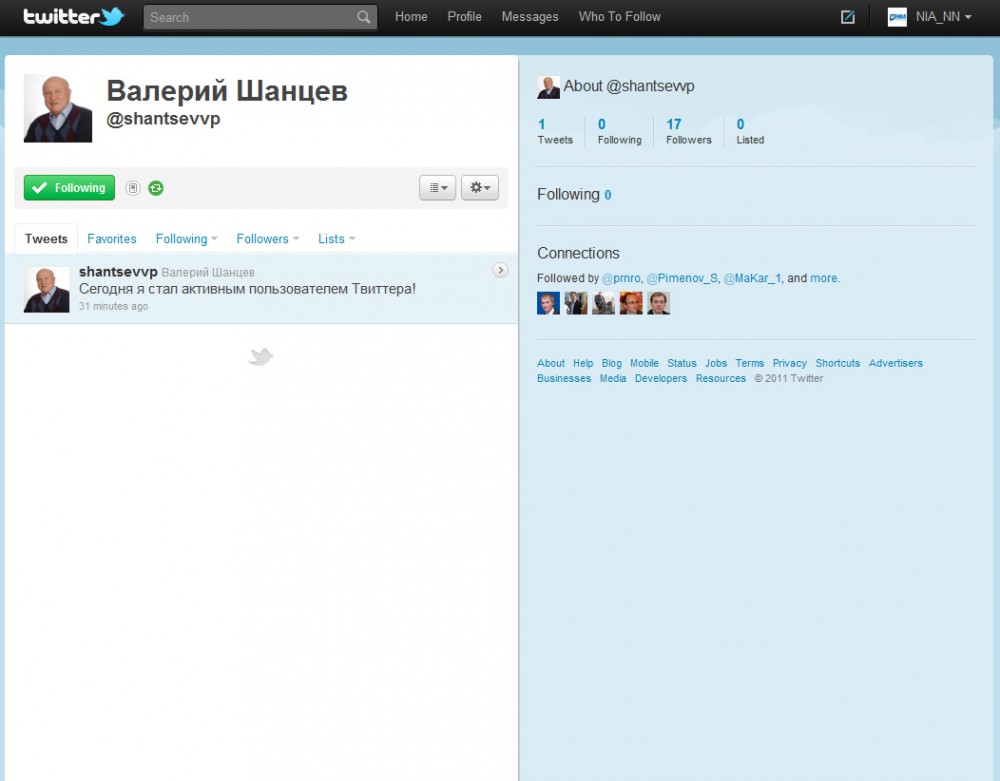 Сам Валерий Шанцев пока не подписан ни на один микроблог.