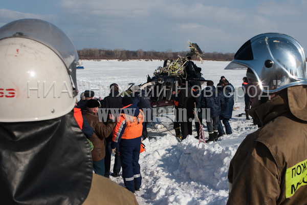 Спасатели  МЧС, сотрудники Следственного комитета и представители МАК изучают останки вертолета, потерпевшего крушение 22 марта