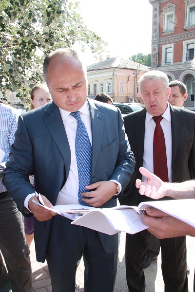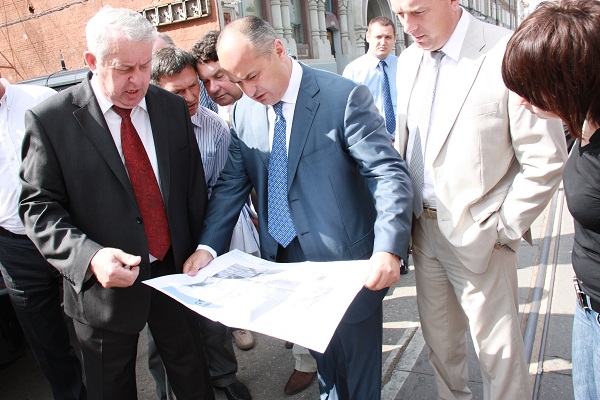 Глава администрации Нижнего Новгорода Олег Кондрашов осматривает план благоустройства улицы