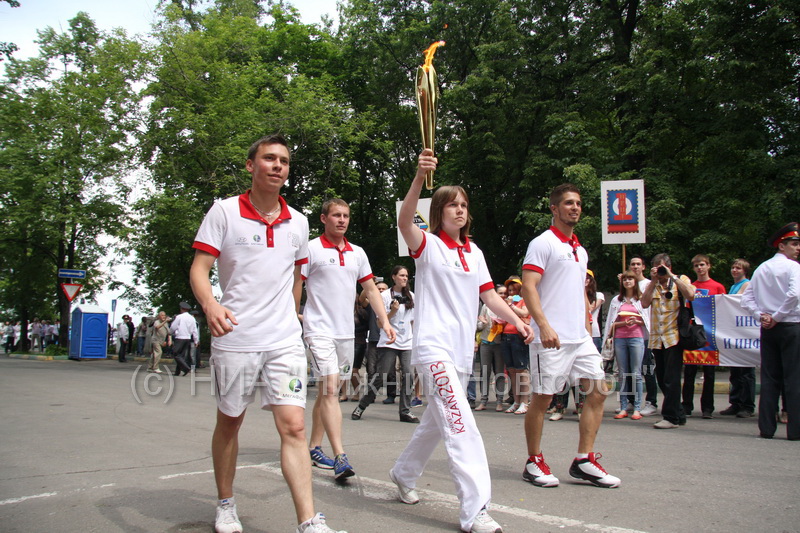 Огонь Универсиады проделал в Нижнем Новгороде в руках марафонцев дистанцию в шесть километров