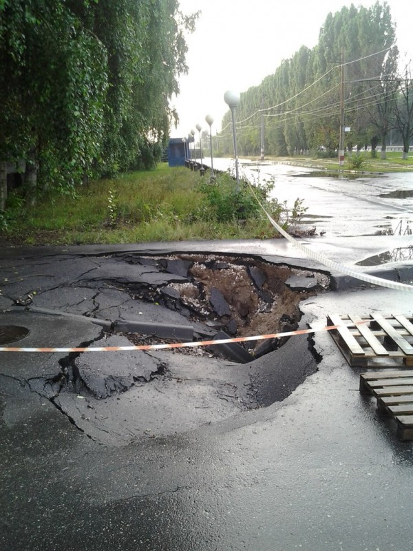 В данный момент место провала огорожено предупреждающей лентой, глубина провала составляет более полуметра.