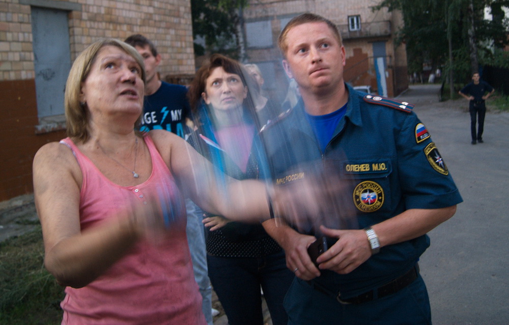 Жители дома рассказывают спасателям о квартирах, в которых остались люди