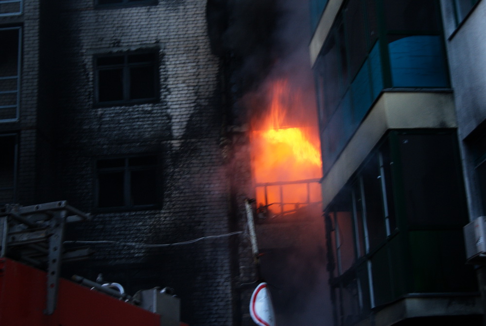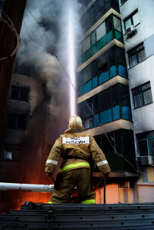 Горящий утеплитель падал вниз и затруднял доступ к зданию