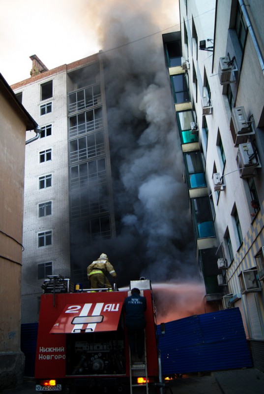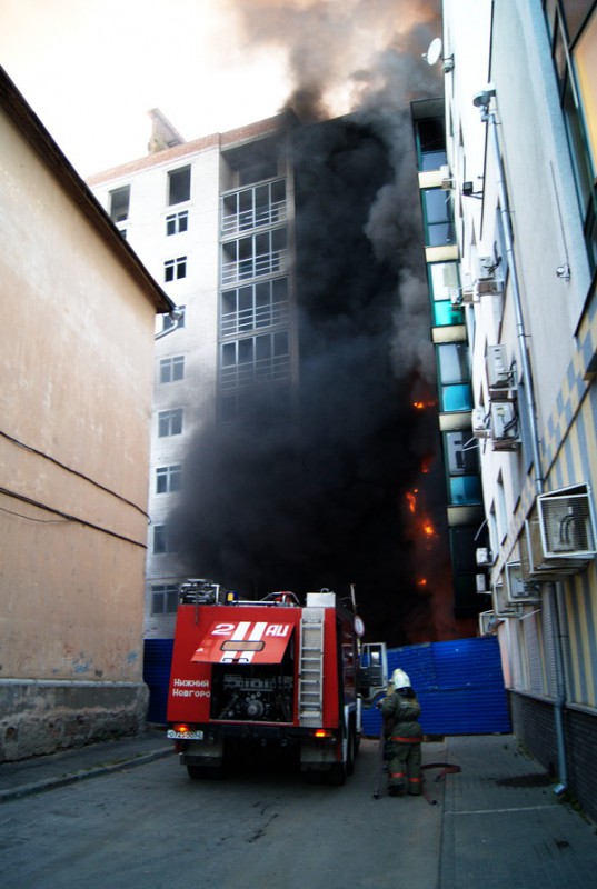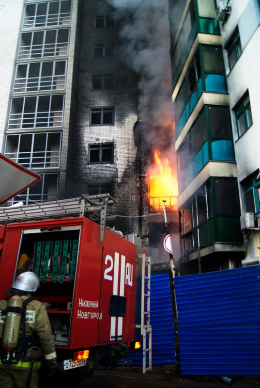 Пожар в многоэтажном жилом доме в центре Нижнего Новгорода
