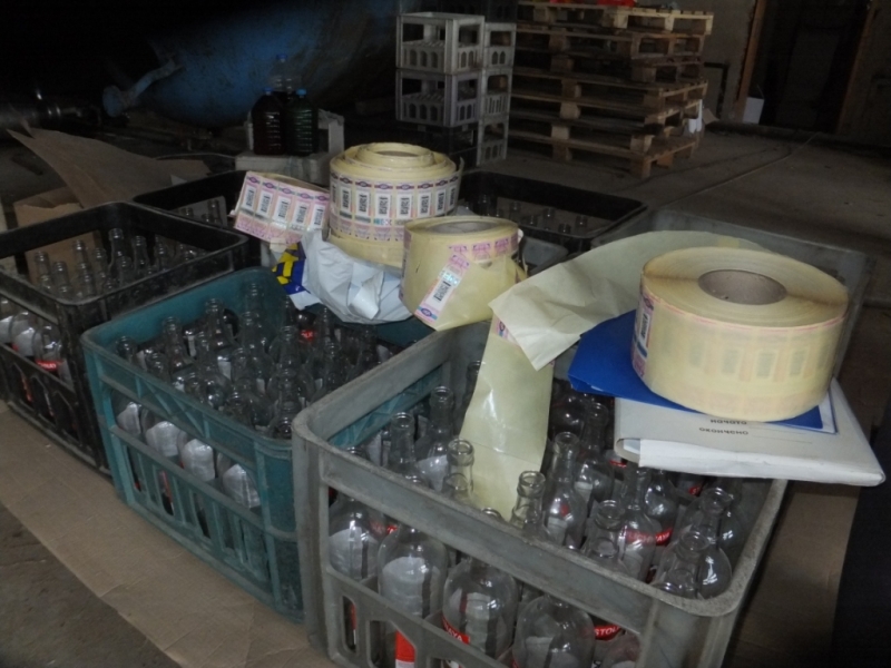 Предполагаемая выручка от продажи данной продукции могла составить более 300 тысяч рублей. Кроме того, на месте было изъято 35 бутылок водки и сырье для ее производства, предположительно общей стоимостью 25 тысяч рублей. В складских помещениях были обнаружены пробки и этикетки для водки и портвейна, всего 10 наименований разных производителей, четыре рулона акцизных марок с признаками подделки для различных алкогольных напитков, а также 3000 стеклянных бутылок и оборудование для выдува пластиковых бутылок.