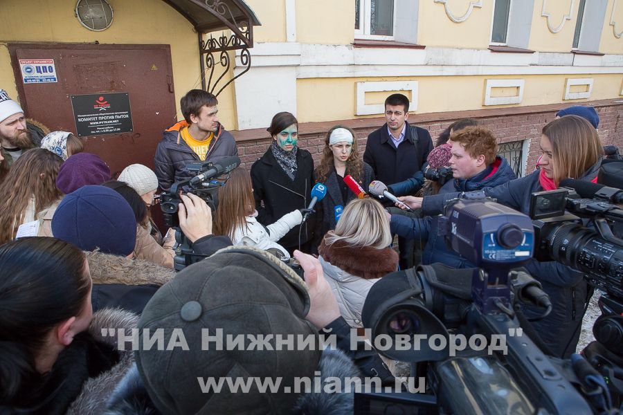 Петр Верзилов на брифинге с участием Надежды Толоконниковой и Марии Алехиной в Нижнем Новгороде