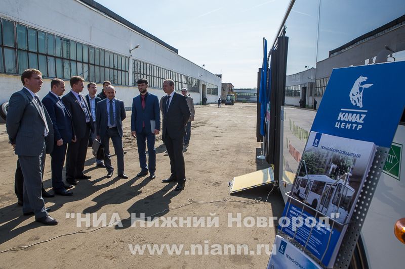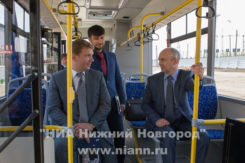 Директор департамента транспорта и связи администрации Нижнего Новгорода Анатолий Гусев (справа) оценил модель нового городского автобуса Нефаз-5299-40-51