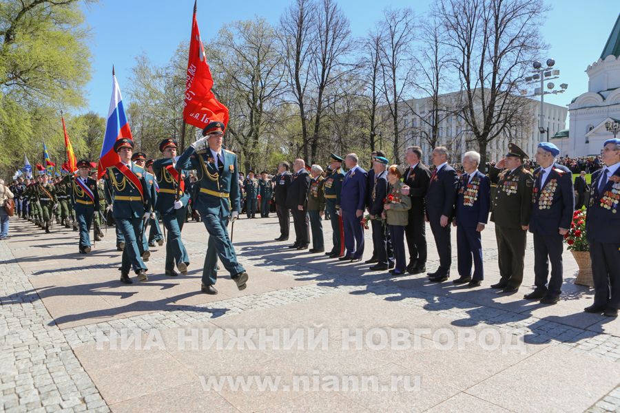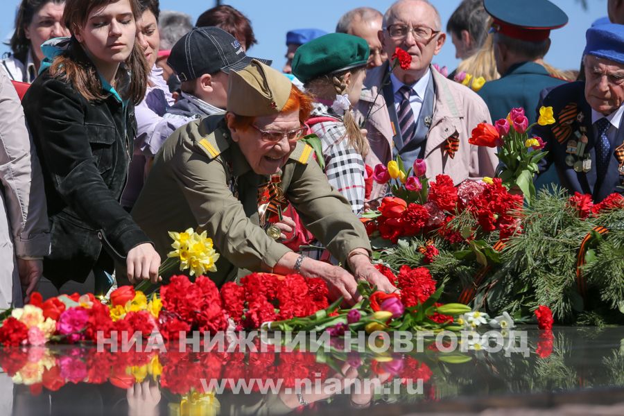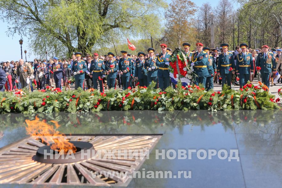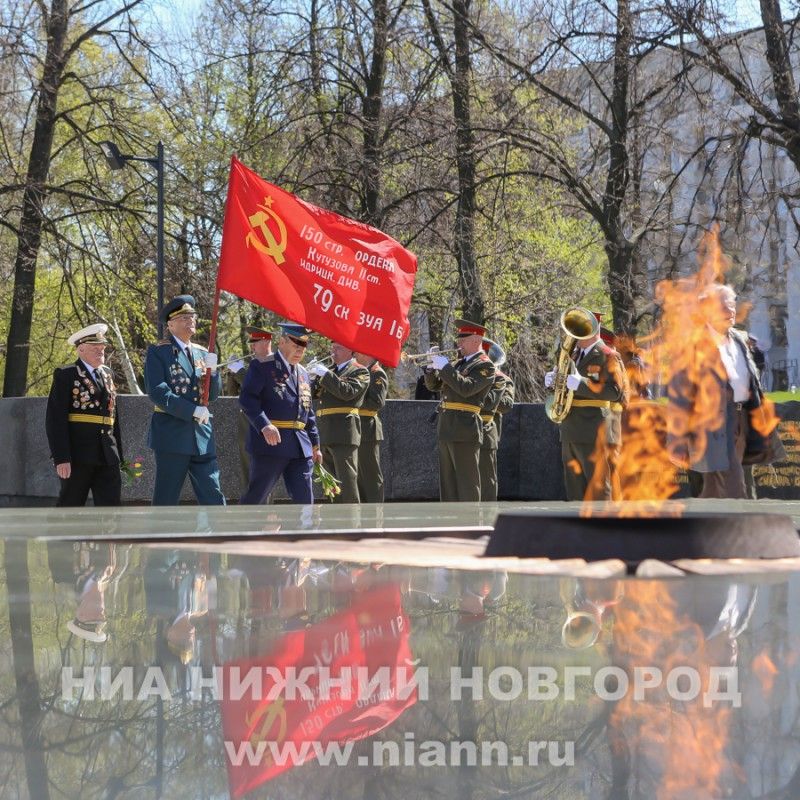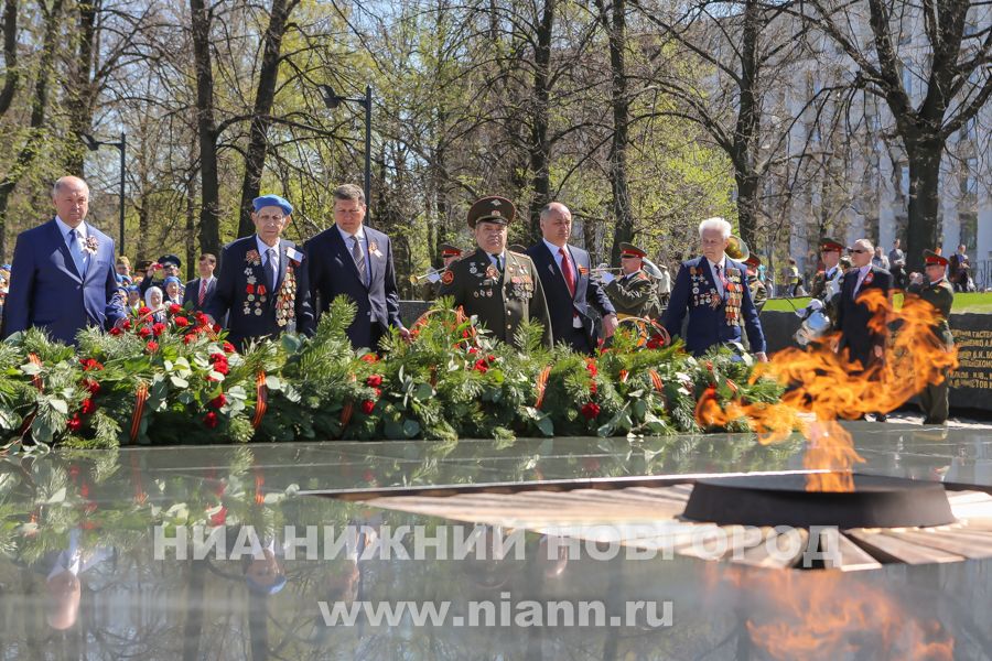 Ветераны, руководители области и города возложили цветы к Вечному огню в Нижегородском кремле