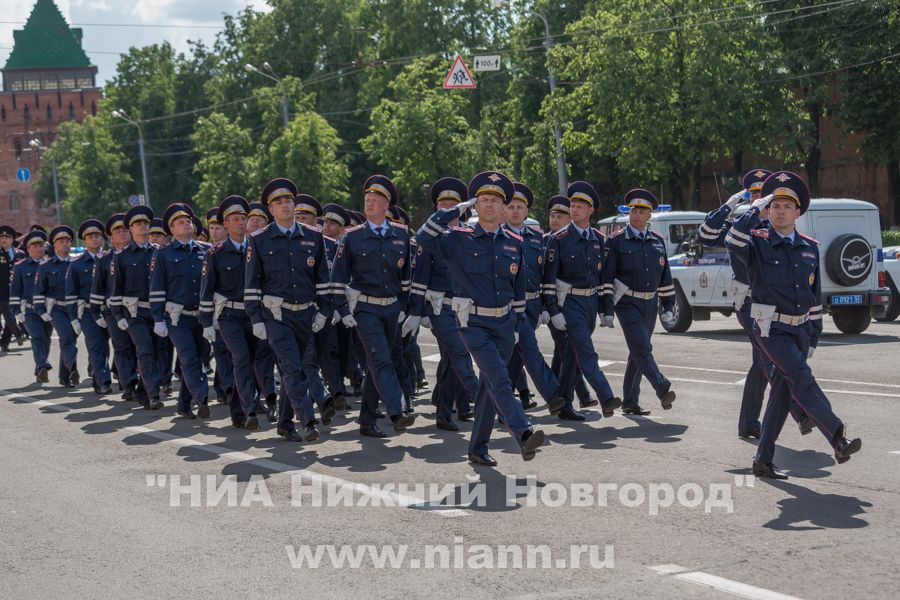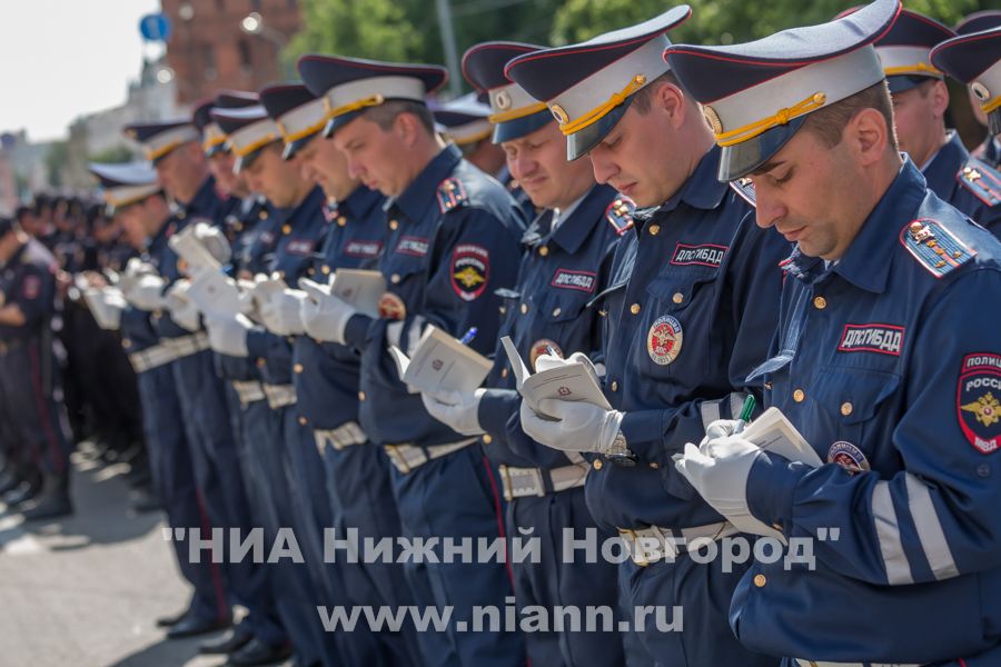 Смотр личного состава Нижегородского гарнизона полиции, привлекаемого к обеспечению охраны общественного порядка в Нижнем Новгороде