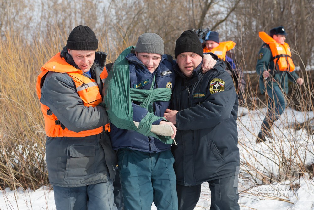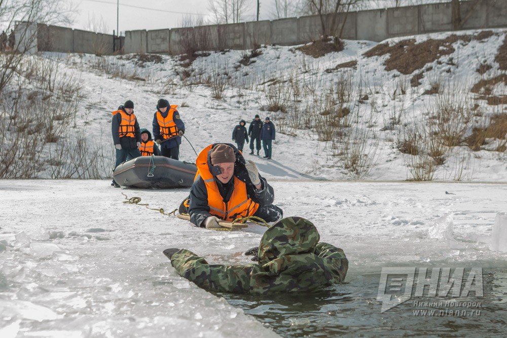 Тактико-специальные учения с аварийно-спасательным отрядом Нижегородской области спасателей в преддверии паводка. В акватории реки Волга отрабатывались четыре различных вводных. В том числе,