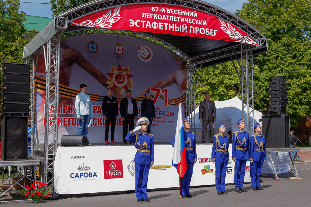 Как сообщают организаторы, 15 мая 2016 года в Нижнем Новгороде состоялся 67-й весенний легкоатлетический эстафетный пробег на призы правительства Нижегородской области, посвященный 71-й годовщине со Дня Победы. Спортивный праздник собрал 2000 любителей бега из 19 районов Нижегородской области и всех восьми районов города. В соревнованиях участвовали 136 команд.