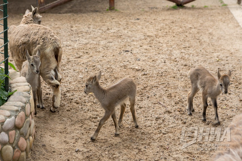 Сразу трое детенышей родилось в семействе голубых баранов в нижегородском зоопарке Лимпопо в июне 2016 года