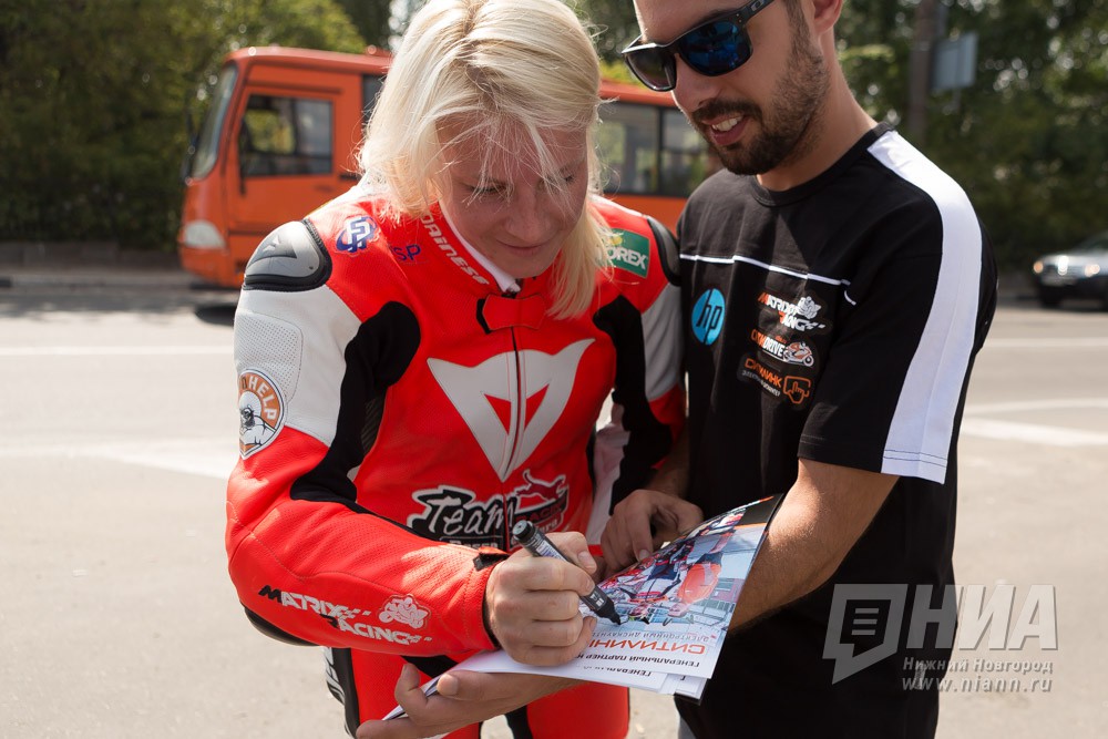 В патрулировании приняла участие пилотесса Мария Медведева - чемпионка России по шоссейно-кольцевым мотогонкам и призер чемпионата Coppa Italia