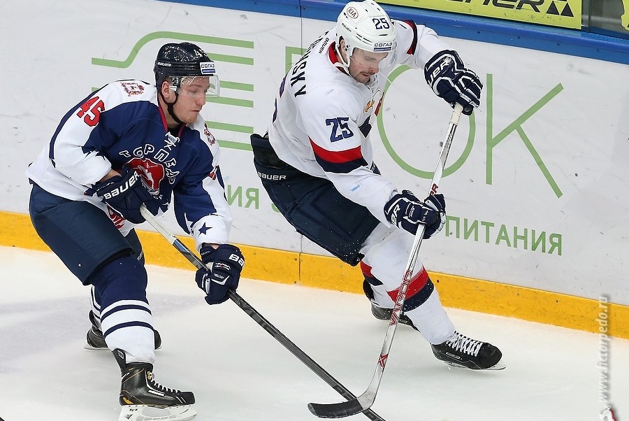 Матч состоялся в Братиславе. На 15 минуте хозяева были близки к голу, но Максим Осипов вынес шайбу из пустых ворот. Затем торпедовцы открыли счет броском Кирилла Рассказова.