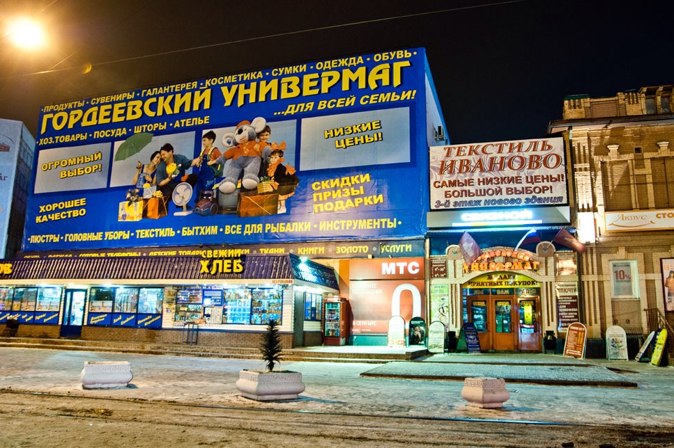 Старое здание Гордеевского универмага – это здание доходного дома Ивана Дорожного и А.Теребилина. Было построено в 1909-1911 годах. Здание является образцом стиля рационалистического модерна начала XX века. В советское время в нем располагался хлебозавод, с 2003 года – универмаг "Гордеевский".