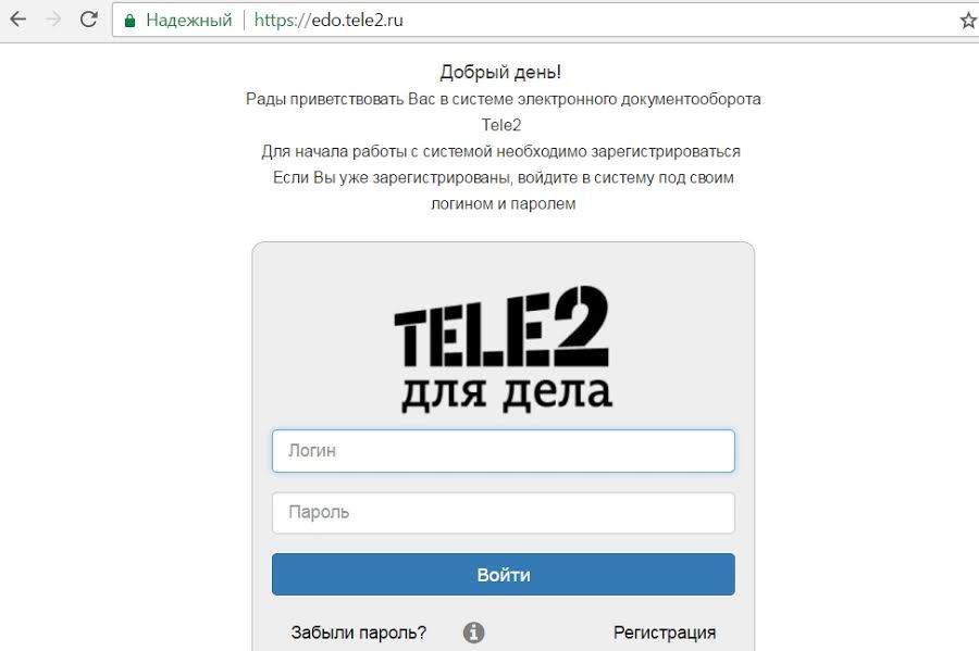 ЭДО сокращает время подключения к сети Tele2: благодаря этой системе не обязательно ехать в офис, чтобы стать корпоративным клиентом оператора. Любое юридическое лицо или индивидуальный предприниматель, имеющие электронную цифровую подпись, могут создать личный кабинет на сайте компании.