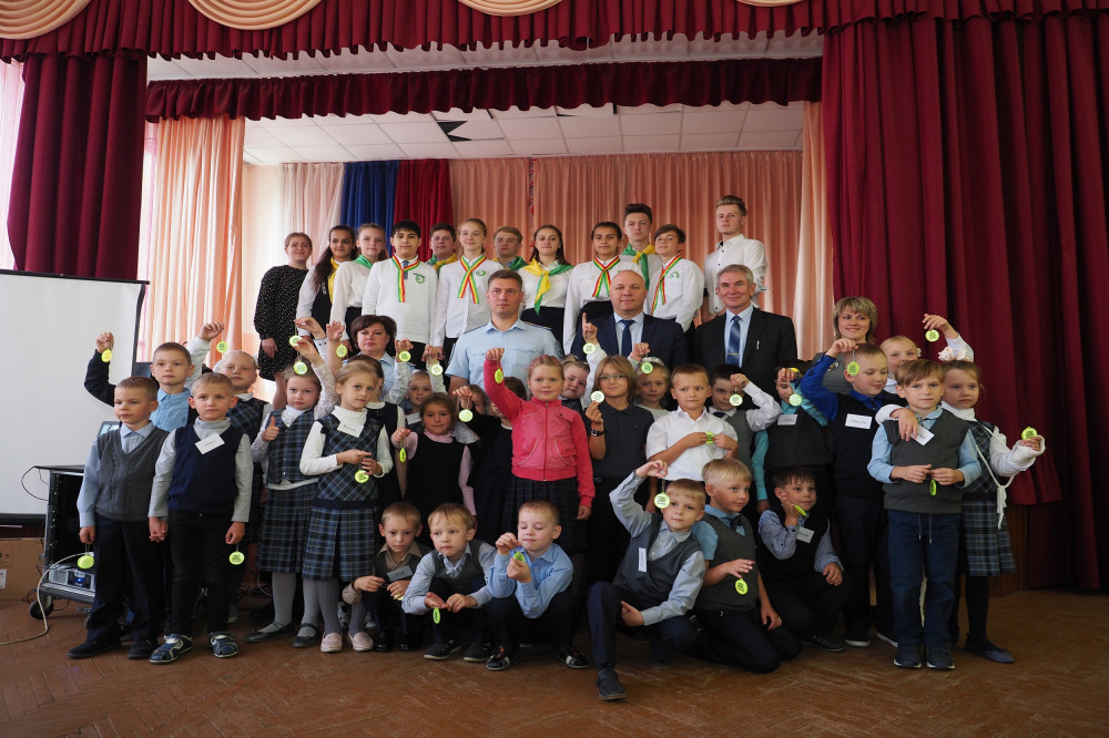 Поздравить ребят с началом учебного года приехали начальник ОГИБДД ОМВД России по Кстовскому району подполковник полиции Дмитрий Воронин и заместитель генерального директора по связям с общественностью ООО "ЛУКОЙЛ-Нижегороднефтеоргсинтез" Антон Гребень. Они пожелали ребятам безопасных дорог и грамотного соблюдения правил дорожного движения, особенно – в темное осеннее время. Затем юным пешеходам были вручены светоотражающие брелоки - всего их было подарено 110 штук.