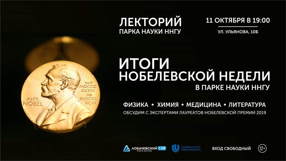 Итоги "Нобелевской недели" обсудят в Парке науки ННГУ "Лобачевский Lab" (ул. Ульянова, 10б) 11 октября 2019 года. Начало в 19:00. Об этом рассказали организаторы.