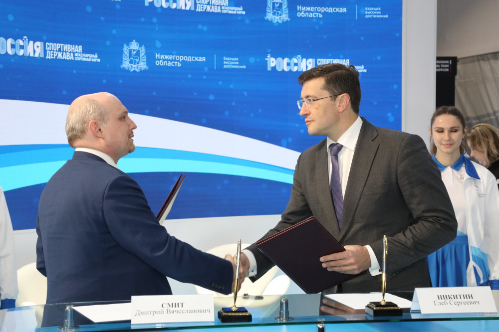 Губернатор Нижегородской области Глеб Никитин и президент Федерации компьютерного спорта России Дмитрий Смит подписали соглашение о сотрудничестве в рамках форума "Россия – спортивная держава" 11 октября 2019 года.