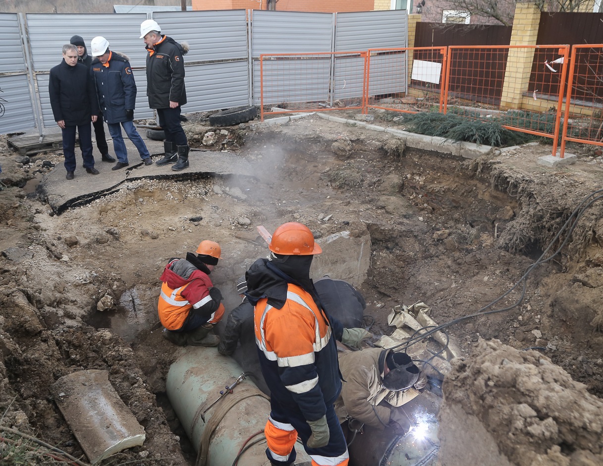 Фото: администрация Нижнего Новгорода Данный участок тепловой сети строился в начале 1990-х годов для обеспечения теплоснабжения микрорайона Кухнечиха. Причина повреждения 25 ноября 2019 года – коррозионный износ локального участка магистральной теплотрассы.