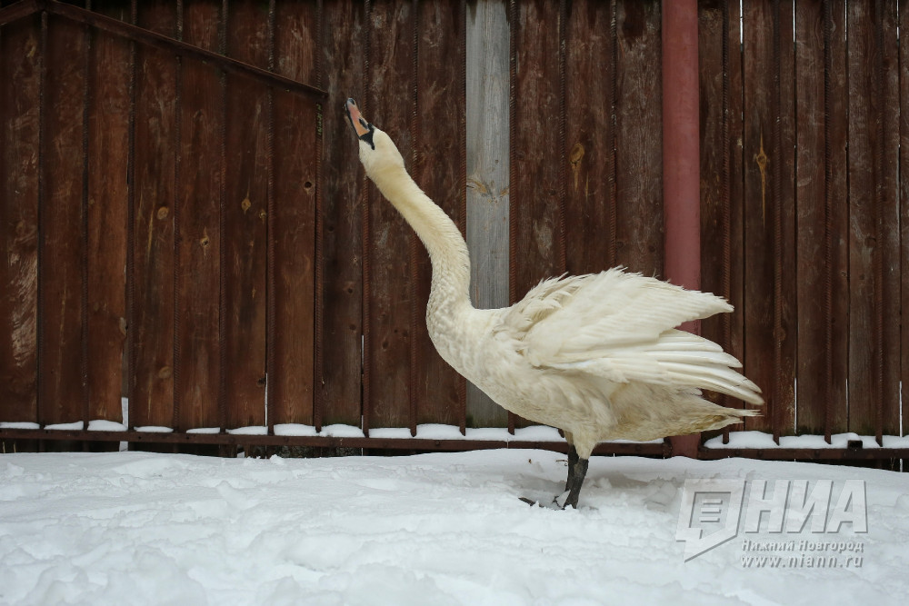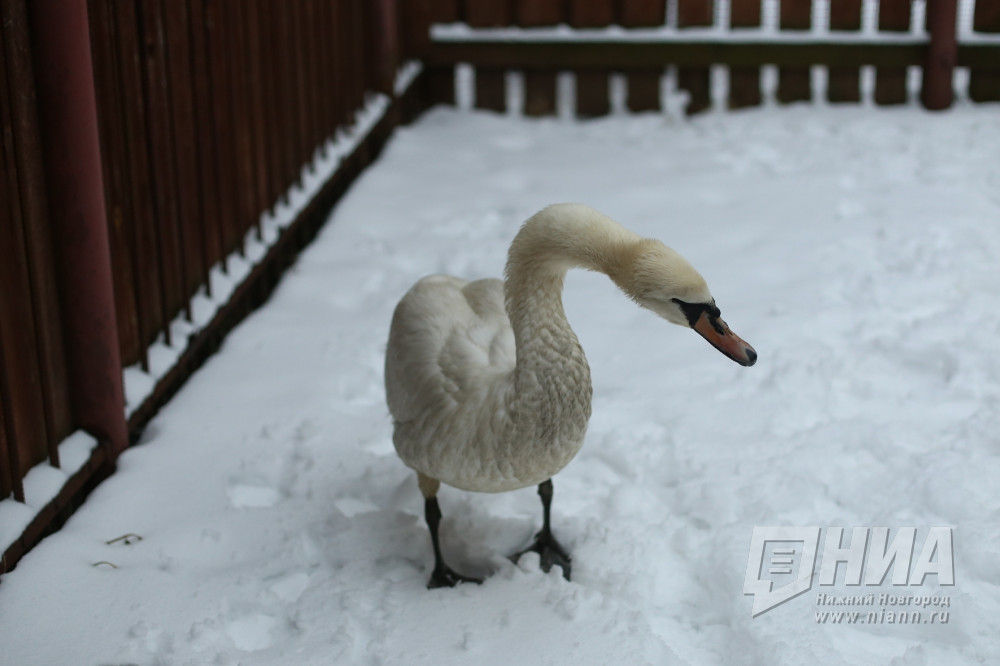 Лебедя-шипуна из Гагинского района перевезли в зоопарк "Лимпопо". Напомним, птицы в этом году впервые появились в селе Какино. Когда наступили морозы, одна из них улететь не смогла. Её спас житель села Владимир Меникин. В зоопарке лебедя осмотрел ветврач. У него было сильное истощение и обморожены лапы. Пришлось даже делать операцию. Сейчас лебедь чувствует себя лучше. Недавно начал есть. Весной, если с его здоровьем будет все в порядке, лебедя отпустят на волю. Фотографии Анастасии Макарычевой.