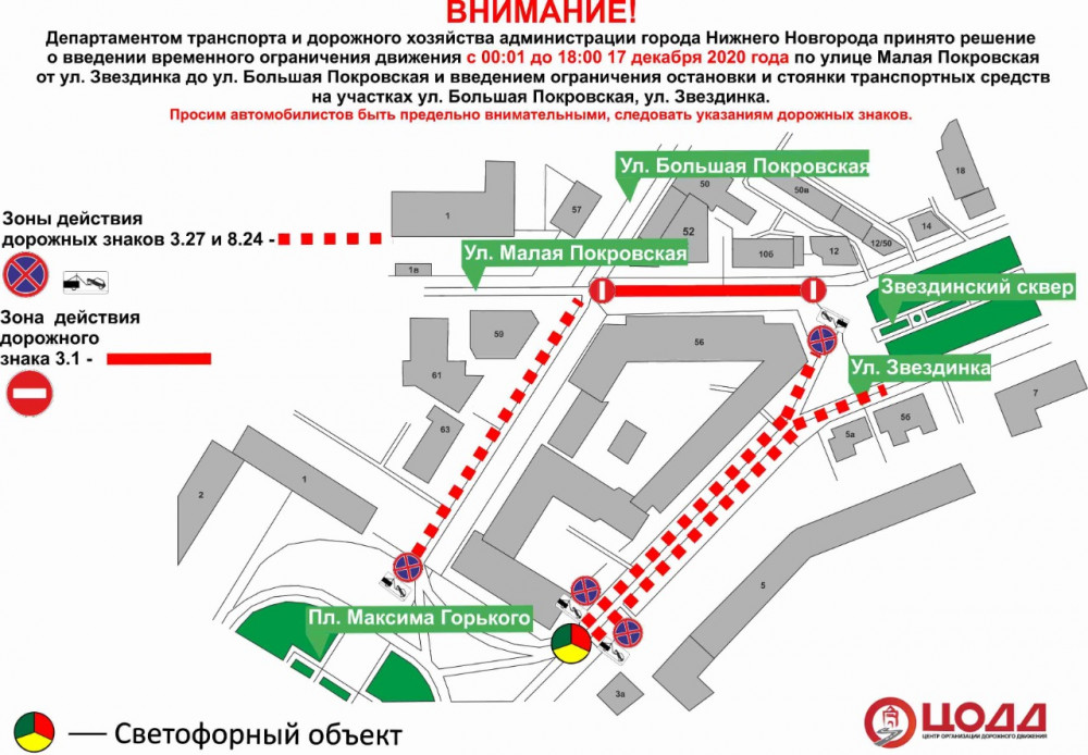 В частности, на участке от ул.Звездинки до ул.Большой Покровской с полуночи и до 18 часов будет действовать запрет на проезд.