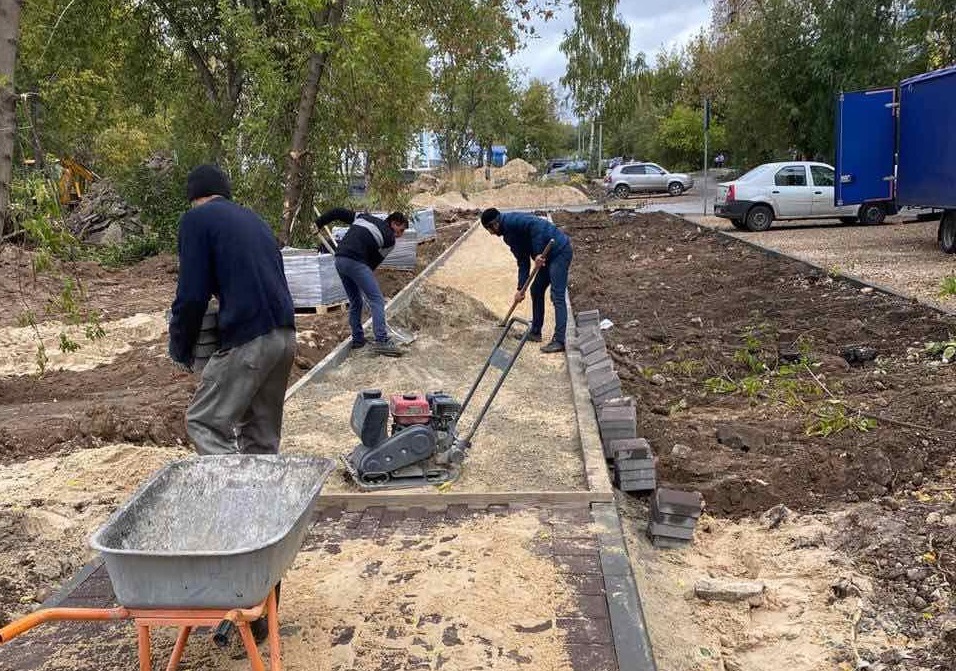 Глава администрации Московского района Владимир Кропотин уточнил, что на данный момент на 65% дорожек уже уложена брусчатка, велодорожка готова также на 65%, бордюры установлены на 70%. Также в рамках контракта нужно установить малые архитектурные формы, разбить газоны и цветники, высадить деревья и кустарники.