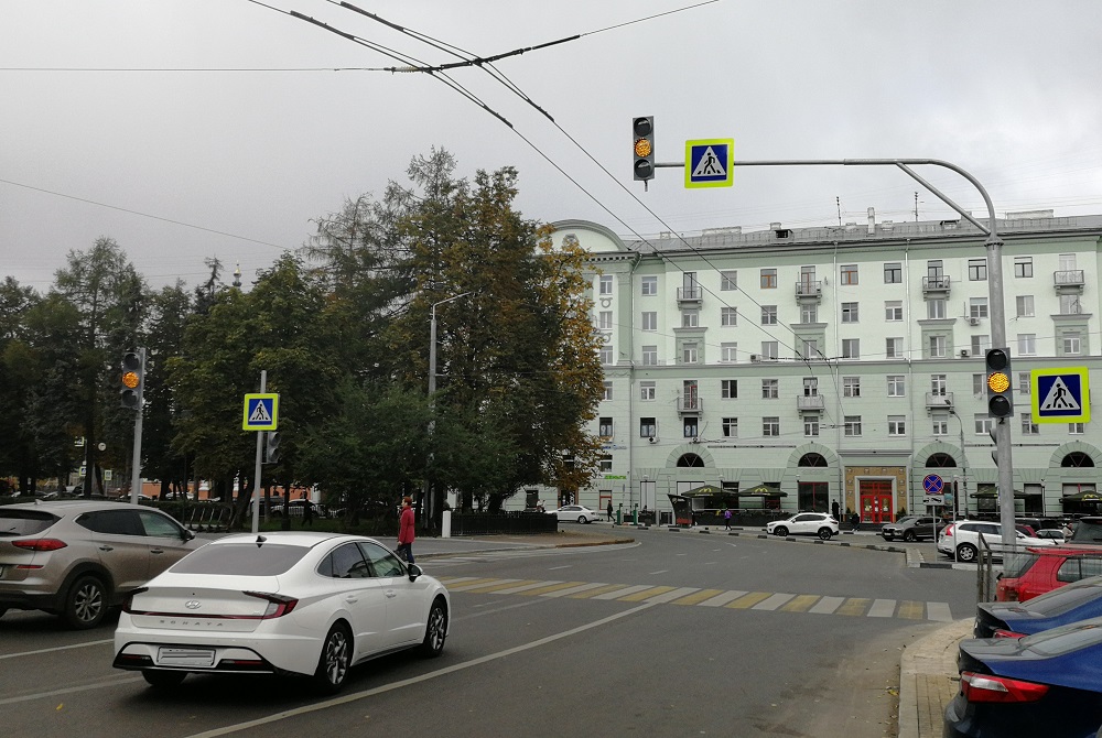 В настоящее время проводится наладка светофорного объекта, он работает в режиме мигания жёлтым светом.