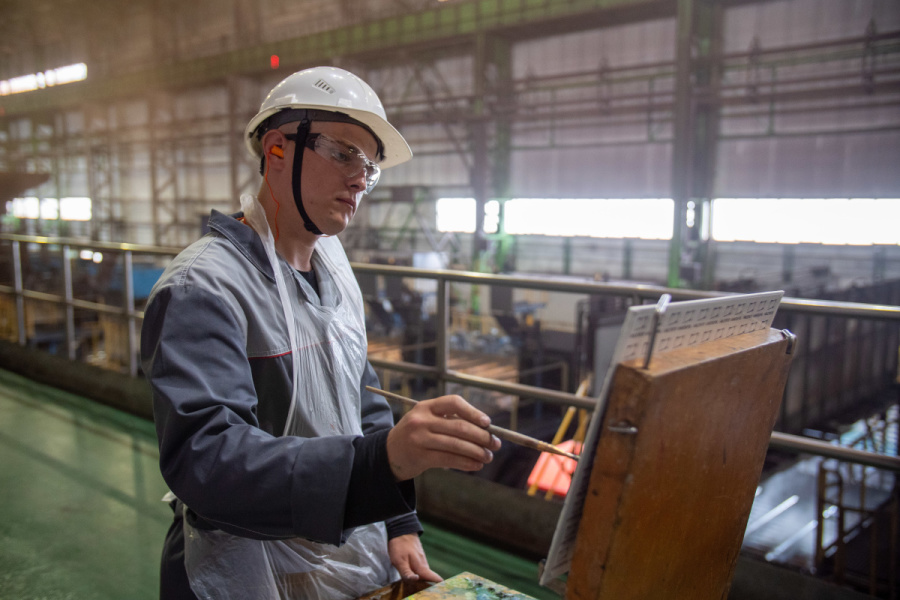 "Этим летом мечта сбылась – я увидел стан-5000, оказался в самом сердце комплекса. На своем этюде я изобразил маслом, как раскалённый металл выходит из печи. Мне кажется, смог передать атмосферу, и оттенки получились красивые. Спасибо ОМК за возможность хоть на несколько часов почувствовать себя металлургом!" - поделился своими впечатлениями автор работы.