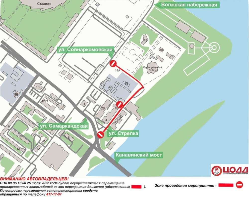Ограничения будут действовать с 16:00 до 18:00 на участке от улицы Самаркандской до Кафедрального собора. Припаркованные в зоне перекрытия автомобили будут эвакуированы, предупредили в ЦОДД