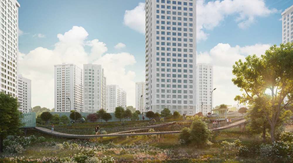 Согласно информации, экологическая тропа будет расположена вдоль границы ЖК у лесопарка "Щелоковский хутор". Здесь появится деревянный настил, приподнятый над землей, который ведет к беседкам с видами на зеленый массив.