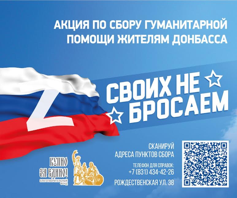 В Нижнем Новгороде начался сбор гуманитарной помощи жителям Донбасса "Своих не бросаем". Об этом сообщили организаторы акции - благотворительный фонд "Купно за едино".