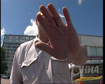На фото: Сотрудник "Комплексной безопасности" препятствует журналистам "Вестей-Приволжья" в проведении съемок здания гостиницы "Ока", где находится штаб кандидата в губернаторы Дмитрия Савельева.