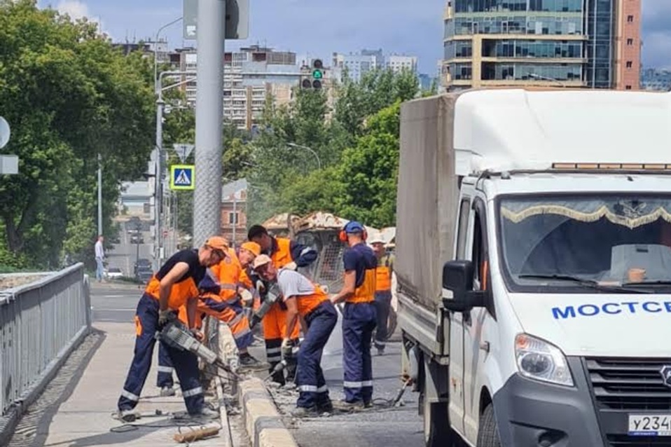 Реконструкция моста реализуется в рамках двух контрактов. Они включают не только обновление ограждений, но и устранение дефектов консолей, а также замену электрокабелей.