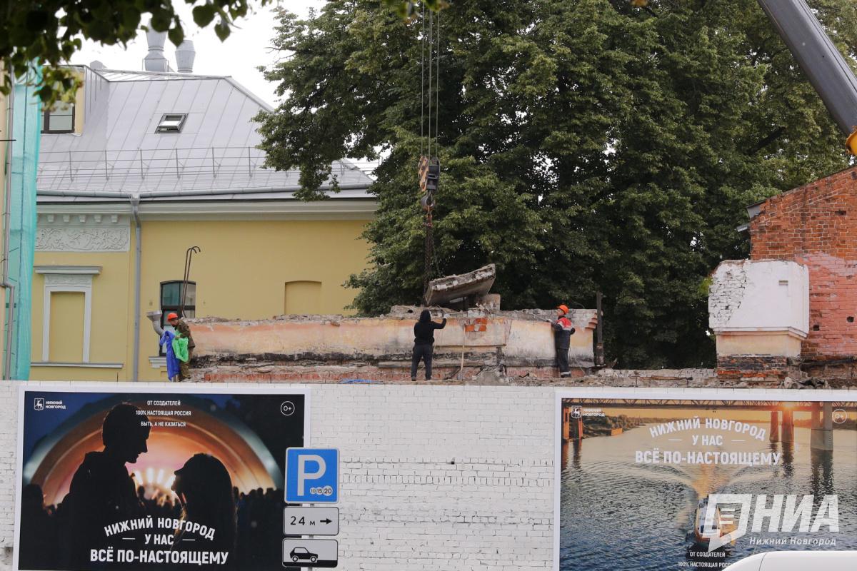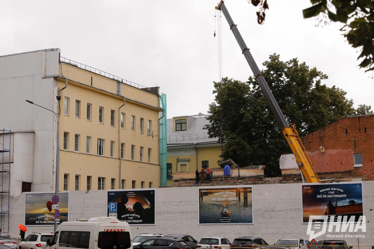 Работы ведет компании "Телеграф", которая планирует построить гостиницу на месте старого центра крови и уже снесенного магазина "Книжный Новгород". В рамках подготовки территории инвестор также займется полной заменой изношенных тепловых и электрических сетей.