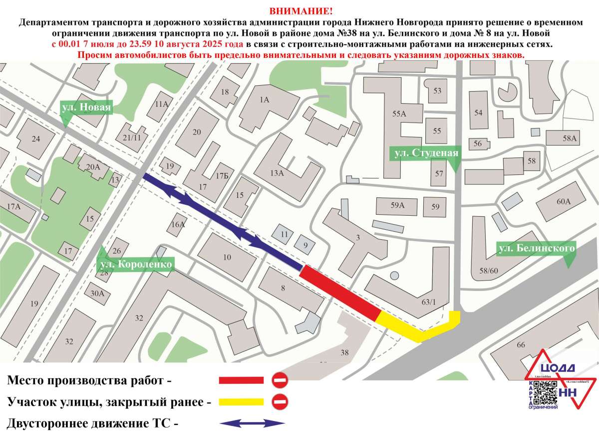 Новый этап работ на теплосетях стартует на улице Новой в Нижнем Новгороде с 7 июля. Как сообщили в городской администрации, до 10 августа будет закрыт участок от дома №38 по улице Белинского до дома №8 по улице Новой.