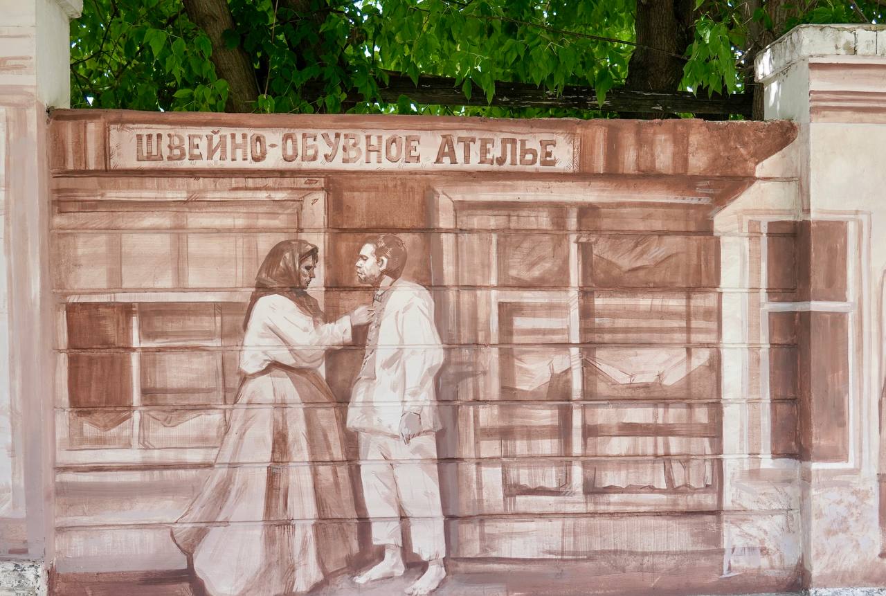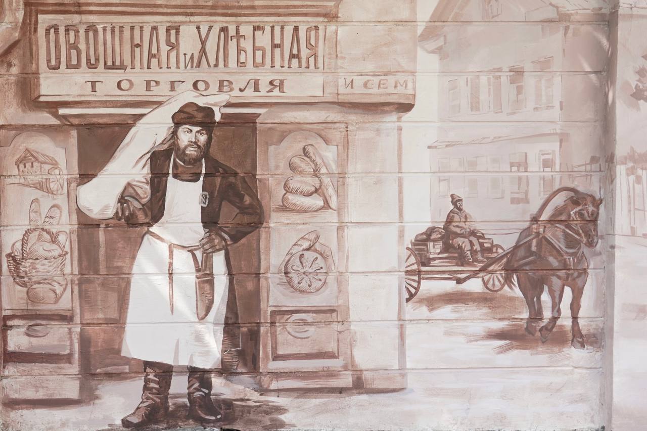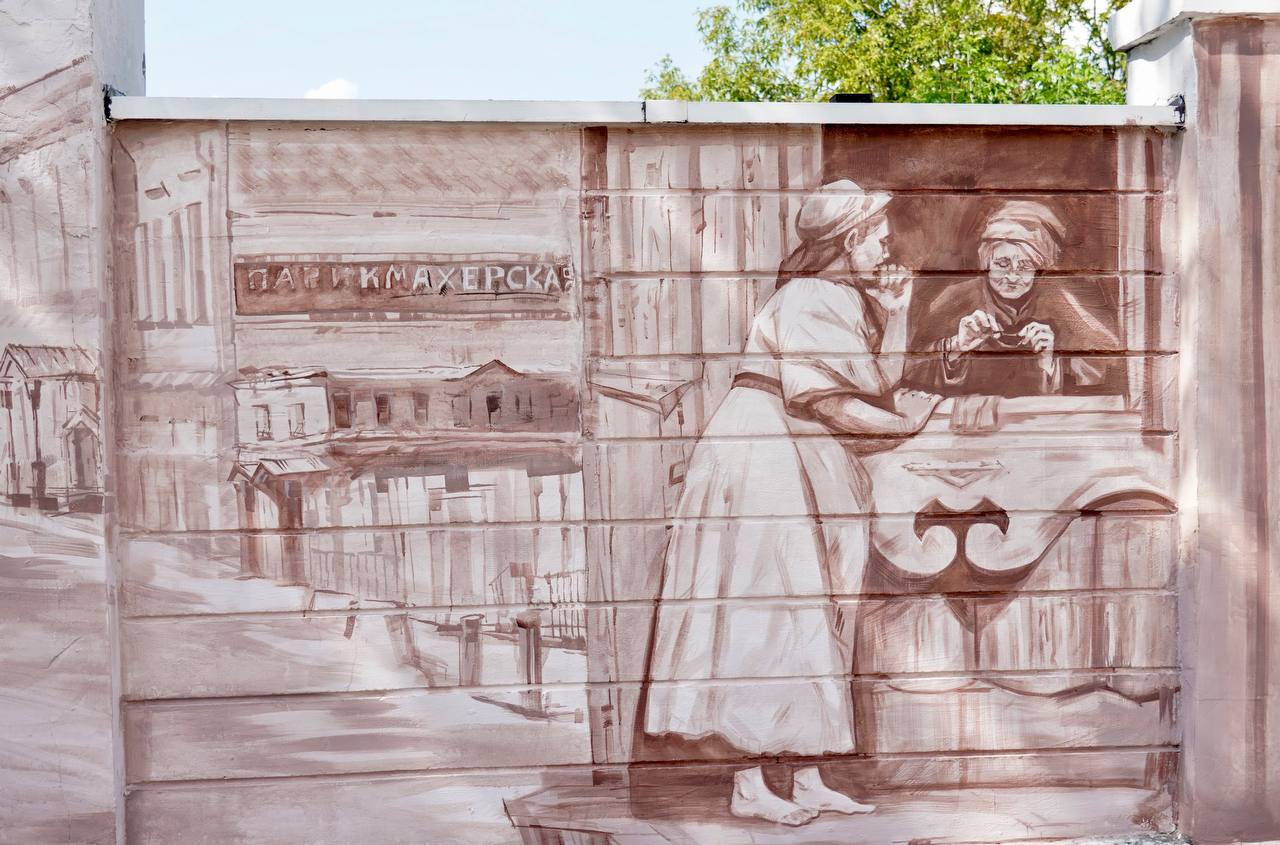 Работа выполнена командой нижегородских художников и стала продолжением серии уличных росписей, рассказывающих о прошлом города.
