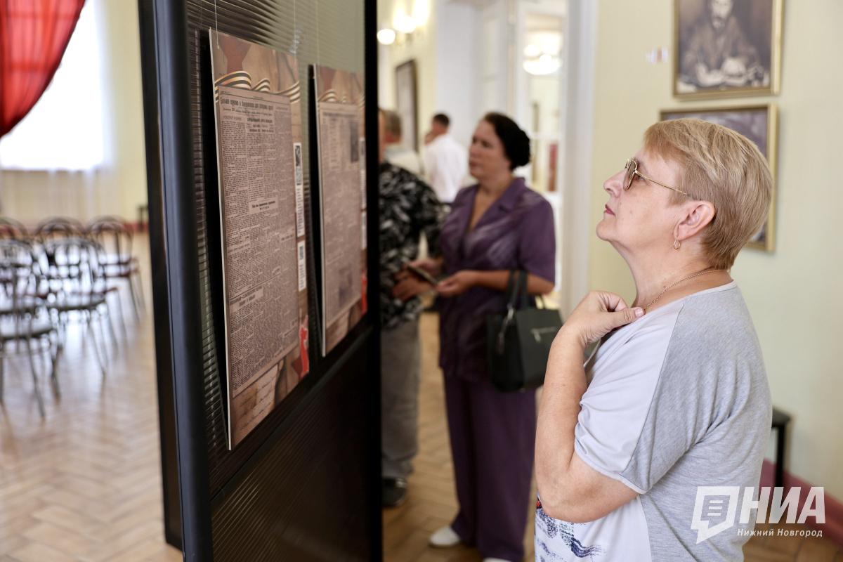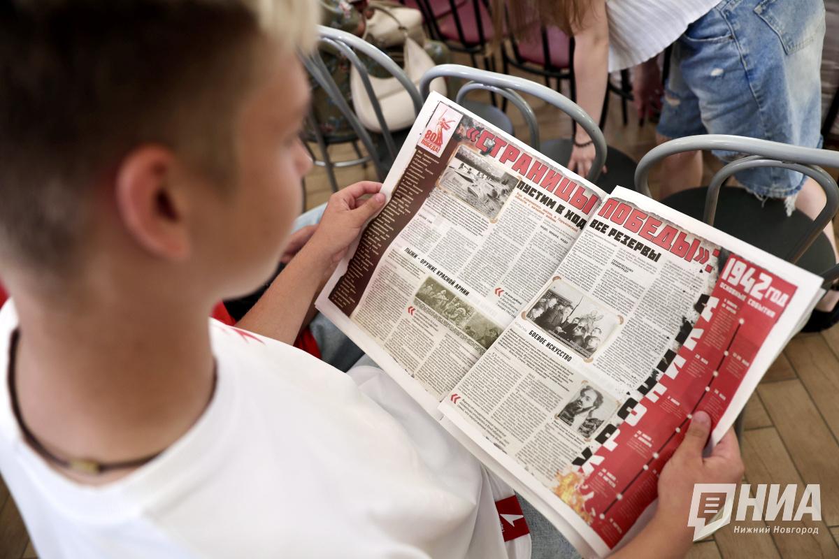 На выставке также представлены работы участников творческого конкурса, посвященного Году защитника Отечества. Все гости получили специальный выпуск "Нижегородской правды" с материалами о Великой Отечественной войне.