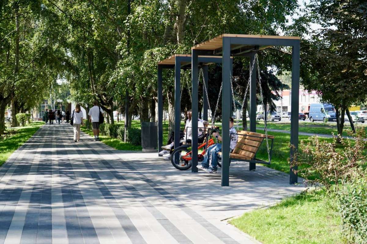 Завершающим этапом стал сквер от улицы Лебедева до улицы 40 лет Победы, где появились новые пешеходные дорожки, лавочки, качели, две детские площадки, теннисные столы, зеленые насаждения и освещение.
