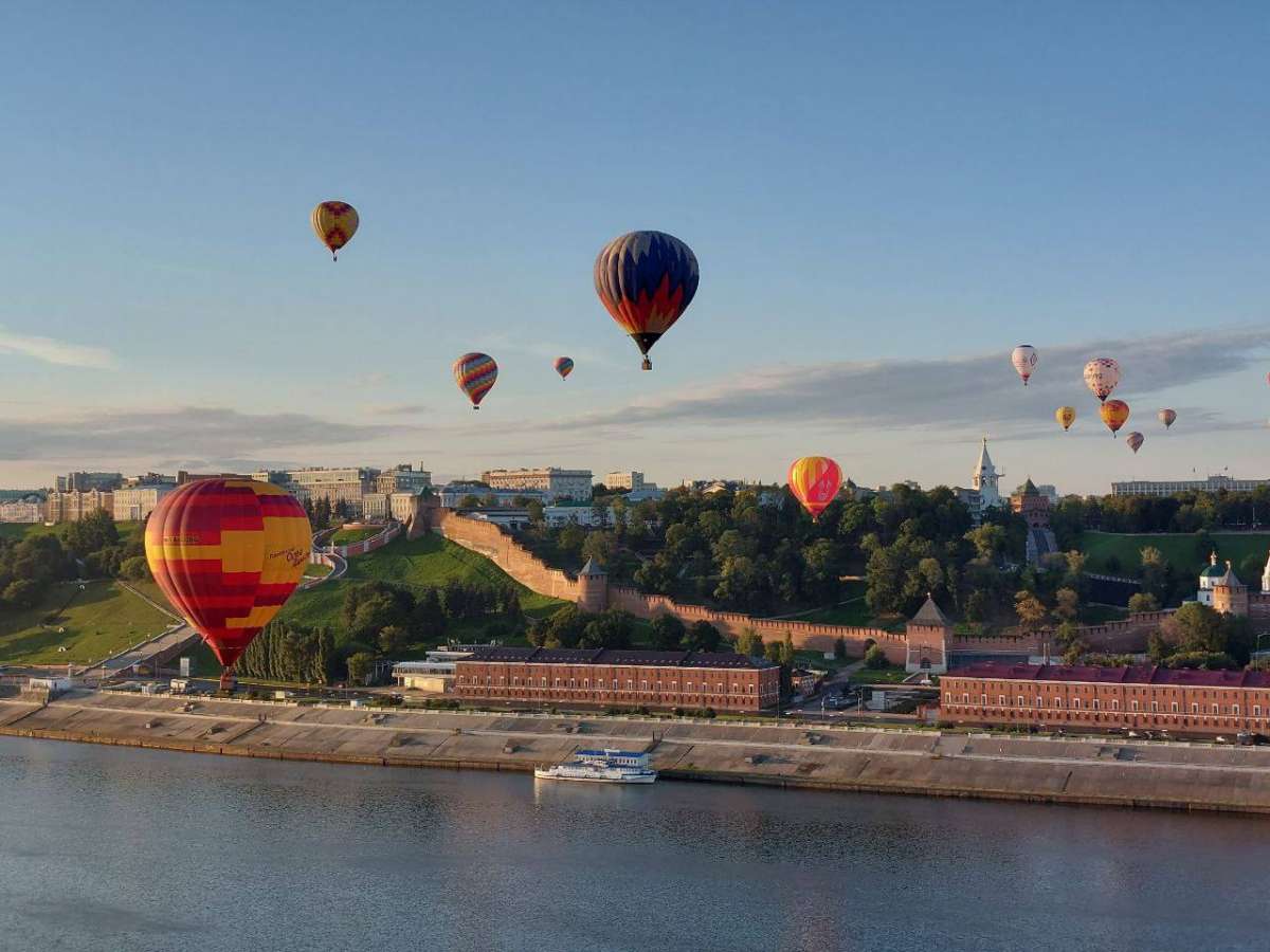 Ранним утром 16 августа, в Нижнем Новгороде стартовал традиционный фестиваль тепловых аэростатов "Приволжская фиеста". День города начался с эффектного взлета воздушных шаров со стороны Бора, которые затем пролетели над Кремлем.